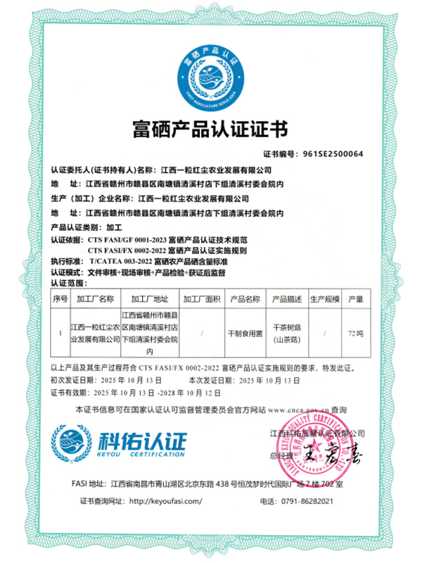 江西一粒紅塵農業發展有限公司是一家總部位于江西省贛縣的現代農業多元型企業,專注于食用菌的研發、種植、深加工、貿易、研教培、農文旅等全產業鏈發展。公司秉承“健康、綠色、共享、共贏”的核心價值觀,致力于引領鄉村振興之路,旨在成為......